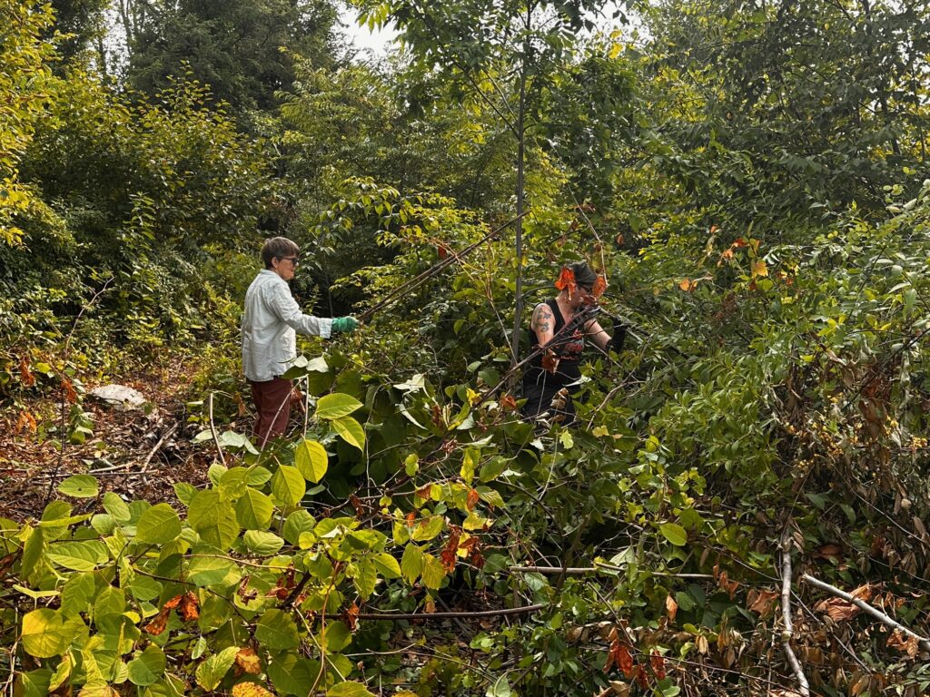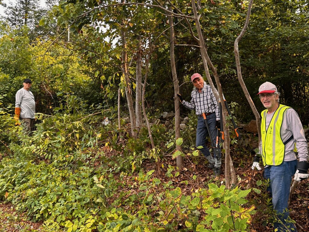 Last week one crew worked at Welch and cleared a new trail moving part of Carol and Polly’s Trail to higher ground. They also worked on improving the stone steps crossing the stone wall at the end of the field. Another crew worked at Hershman’s Hollow and cleared a large stand of Japanese Knotweed and other invasive plants at the entrance, opening up a view of the stone wall and making the hidden entrance very visible.