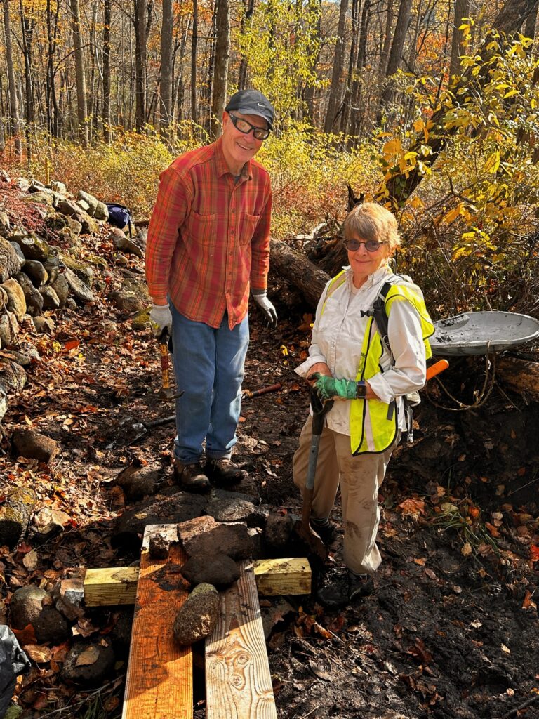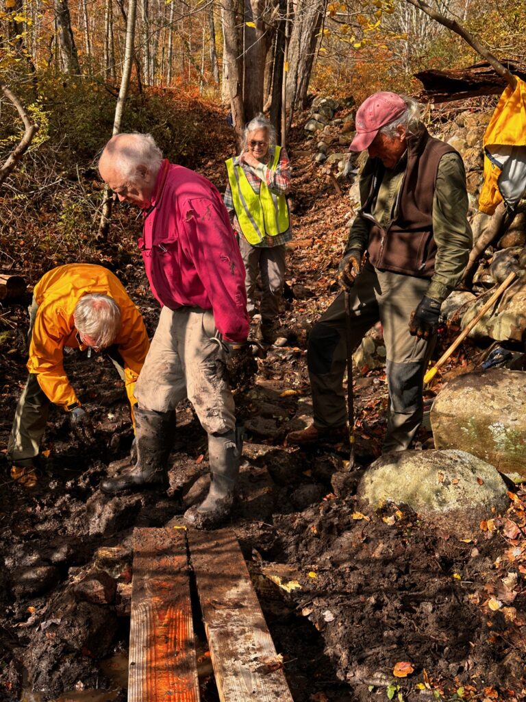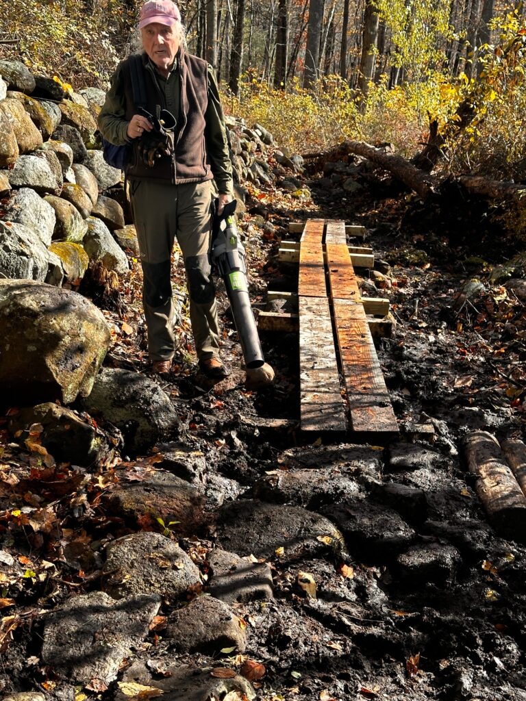 Last week Andre and Norm cleared the Veterans Park Trail of trees and the rest of us installed several lengths of bog bridging at Hall Preserve to raise the trail above a perennially wet and muddy section.
